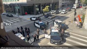 Officers with the Los Angeles Police Department responded to a possible shooting in progress at around 3:25 p.m. in the area of 5th and Los Angeles streets, officials confirmed to KTLA.