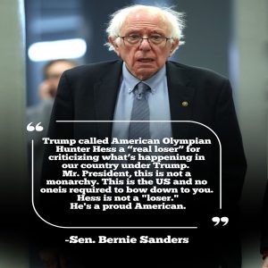 Sen. Bernie Sanders sharply criticized President Donald J. Trump after reports surfaced that the president had referred to American Olympian Hunter Hess as a “real loser” for publicly questioning the country’s direction. Sanders’ response was swift and pointed, framing the exchange not as a personal dispute, but as a test of democratic values and the right of Americans — including athletes — to speak freely without fear of retaliation from those in power.