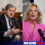 The room went from laughter to stunned silence in an instant as Jill Biden aimed a sharp jab at John Kennedy—only to be met with a single, ice-cold sentence that left everyone frozen. Cameras caught the moment perfectly: colleagues gaping, reporters holding their breath, and a silence so heavy it felt like the walls themselves […]