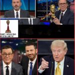 Colbert Turns Trump’s “Appease Prize” Into a Hilarious On-Air Roast, Flaunting His Own Golden Trophy and Mocking Kimmel in a Comedic Slam.giang