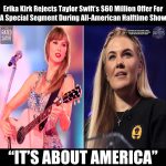 Erika Kirk Rejects Taylor Swift’s $60 Million Offer For a Special Segment During All-American Halftime Show October 25, 2025 by Alex Bruno Categories: Satire In what can only be described as the most American act of defiance since someone refused to eat avocado toast on national television, Erika Kirk — widow of the late conservative icon Charlie Kirk […]