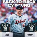 CONGRATULATIONS: Tarik Skubal Makes MLB History — Detroit’s Ace Becomes First Back-to-Back AL Cy Young Winner Since Pedro Martínez For the second straight year, Tarik Skubal has done it again — and this time, it feels even bigger. On Thursday night, the Detroit Tigers’ left-handed ace was officially named the American League Cy Young Award […]