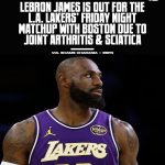 The basketball world was rocked Friday afternoon when the Los Angeles Lakers announced that LeBron James would not suit up for their high-stakes matchup against the Boston Celtics. The official reason: joint arthritis and sciatica, a combination that immediately triggered panic among fans and uncertainty inside the Lakers organization. For a team desperately trying to […]
