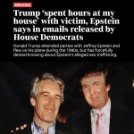 WASHINGTON — Jeffrey Epstein, the disgraced financier and accused sex trafficker, wrote that President Donald Trump “spent hours at my house” with one of Epstein’s victims and allegedly “knew about the girls,” according to emails released Wednesday by House Democrats. The White House called the Democratic release of the emails a “smear campaign.” During the […]