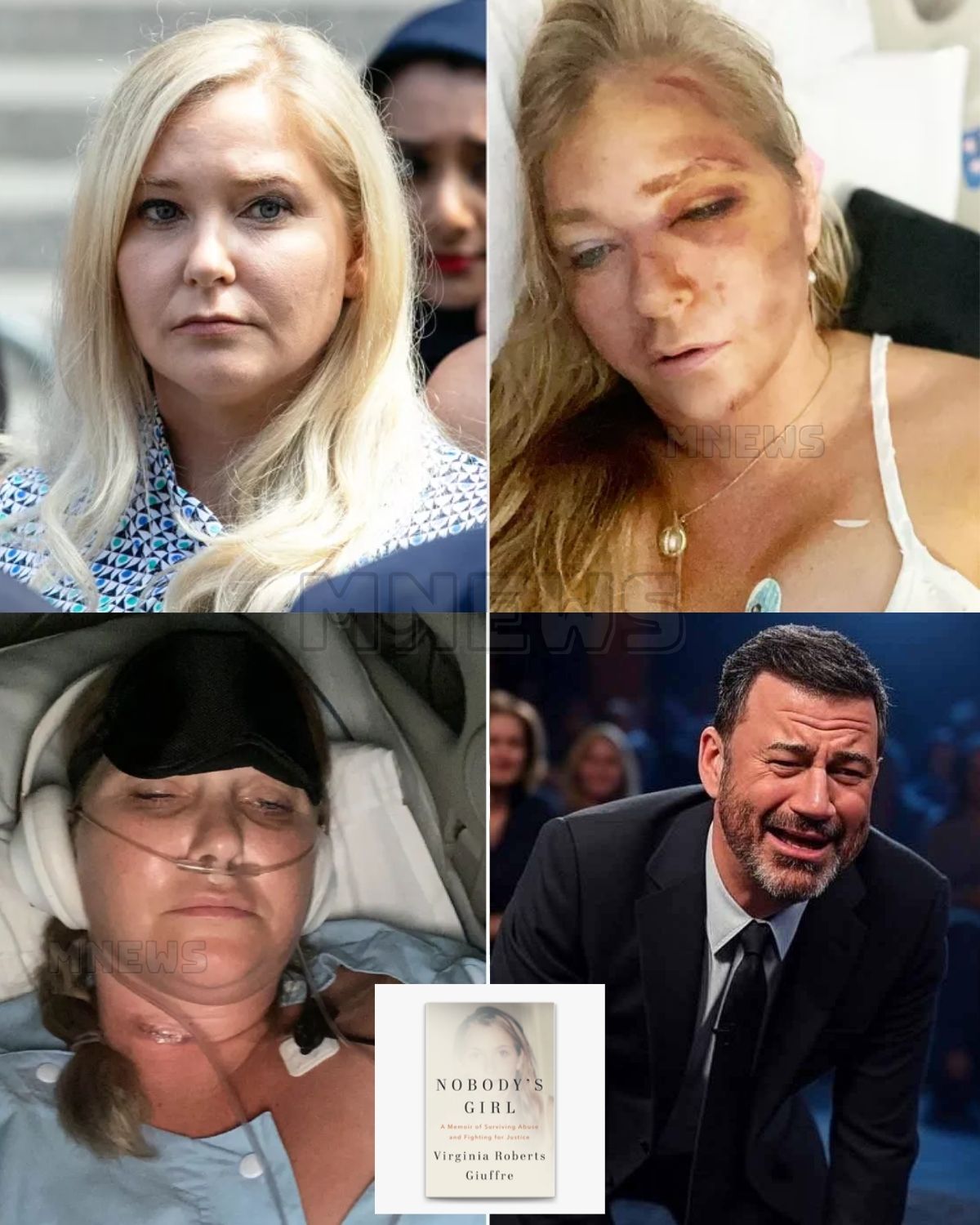 The jokes stopped. The cue cards lowered. And in a moment that felt bigger than late-night TV, Jimmy Kimmel’s voice broke as he addressed the release of Nobody’s Girl — the posthumous memoir of Virginia Giuffre. What followed wasn’t a bit or a monologue; it was a raw confession of anger and empathy, and a vow to do something about it.