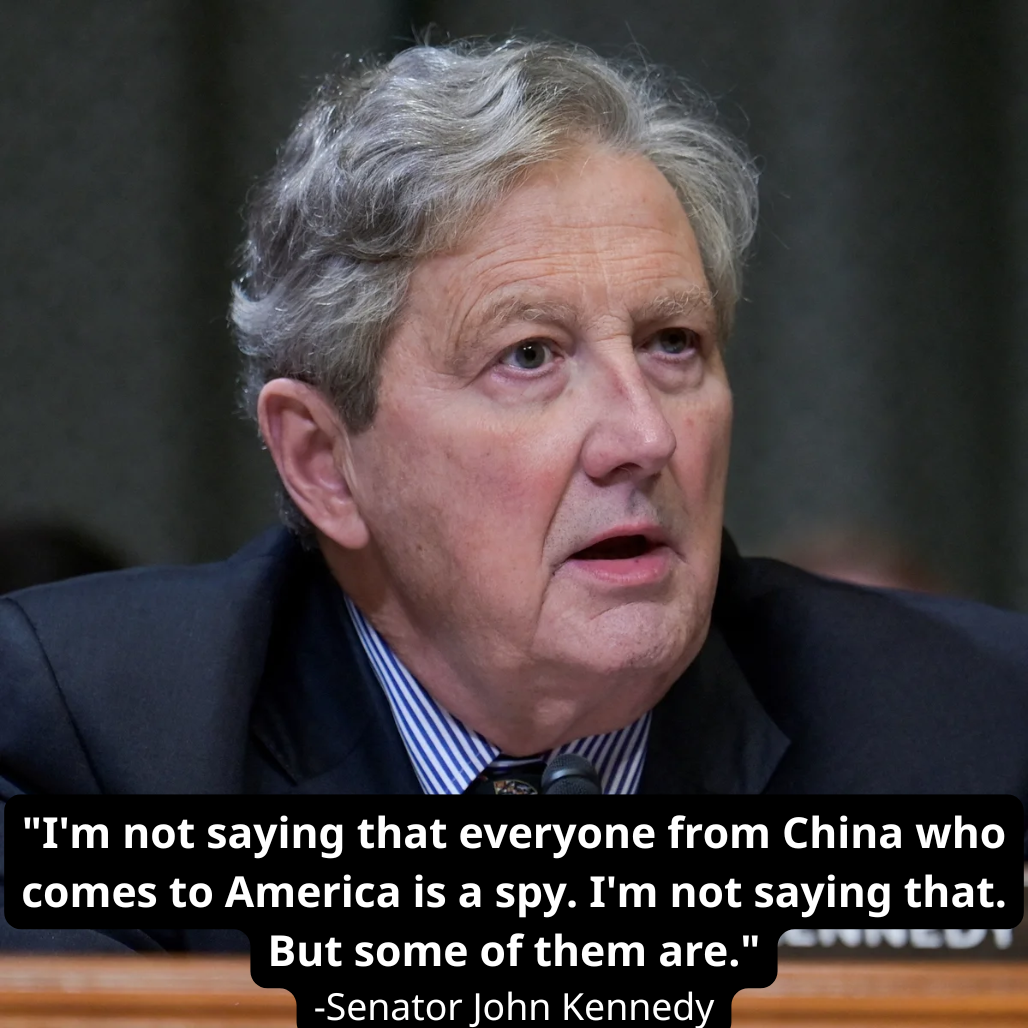 In the Senate chamber, the air seemed to freeze. A hush fell over staffers, reporters, and colleagues alike, as if the room itself were holding its breath. Senator John Kennedy leaned slightly forward, gaze sharp, voice low but cutting through the silence like a surgeon’s scalpel. “Not every Chinese student is a spy — but enough are to make the shadows dance.”