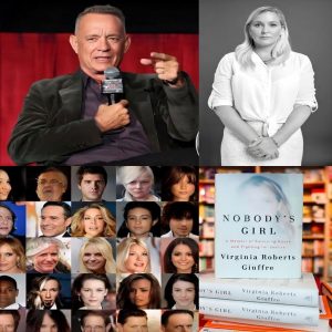 One by one, Hanks read aloud 14 names. No accusations were spoken. No judgments were issued. Each name was presented without elaboration, accompanied only by blurred archival imagery projected behind him—images that did not directly explain themselves, yet carried unmistakable gravity. The restraint was deliberate. Viewers were left to confront recognition, memory, and implication without being told what to think.