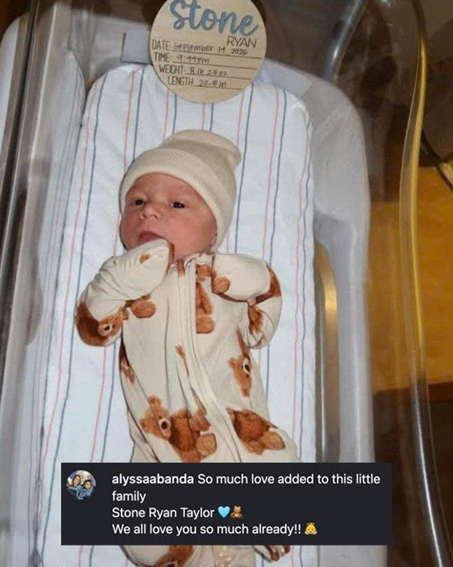 On September 14, 2025, at a local hospital, Tyrone Taylor and his wife officially welcomed their little angel – baby Stone Ryan Taylor, weighing 3.6 kg and 52 cm long. The image of the baby lying snugly in a hospital blanket with a teddy bear-patterned outfit was quickly shared on social networks, along with a warm message from the baby’s mother: “So much love added to this little family. We all love you so much already!!”